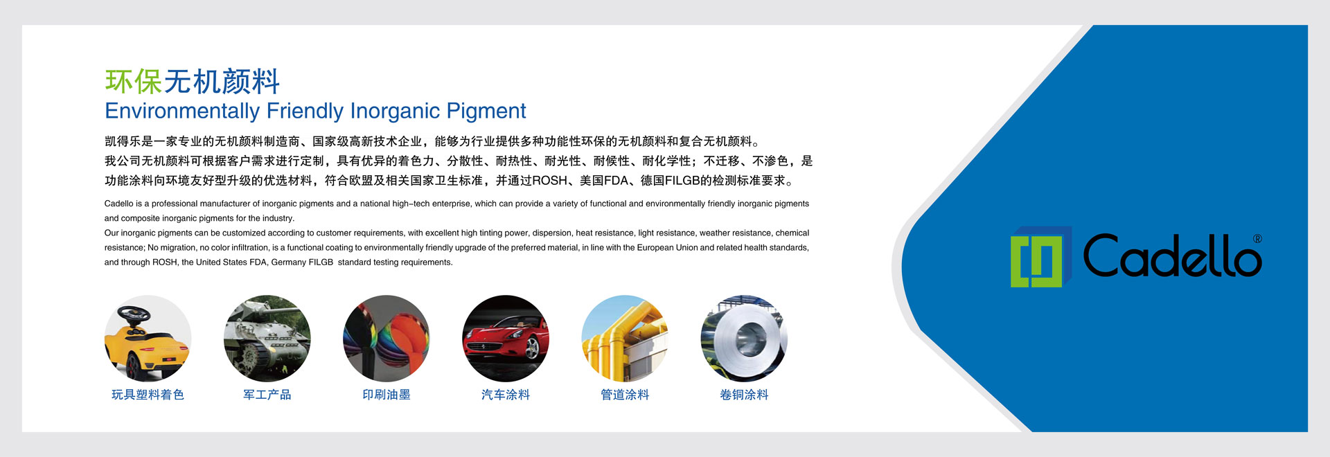 凱得樂(lè)是一家專(zhuān)業(yè)的無(wú)機(jī)顏料制造商、國(guó)家級(jí)高新技術(shù)企業(yè),能夠?yàn)樾袠I(yè)提供多種功能性環(huán)保無(wú)機(jī)顏料和復(fù)合無(wú)機(jī)顏料。